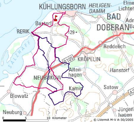 Rerik - Blengow - Zweedorf - Jörnstorf - Westenbrügge - Krempin - Alt Karin - Danneborth - Kamin - Moitin - Kirch Mulsow - Garvensdorf - Zarfzow - Neubukow - Russow - Roggow - Rerik